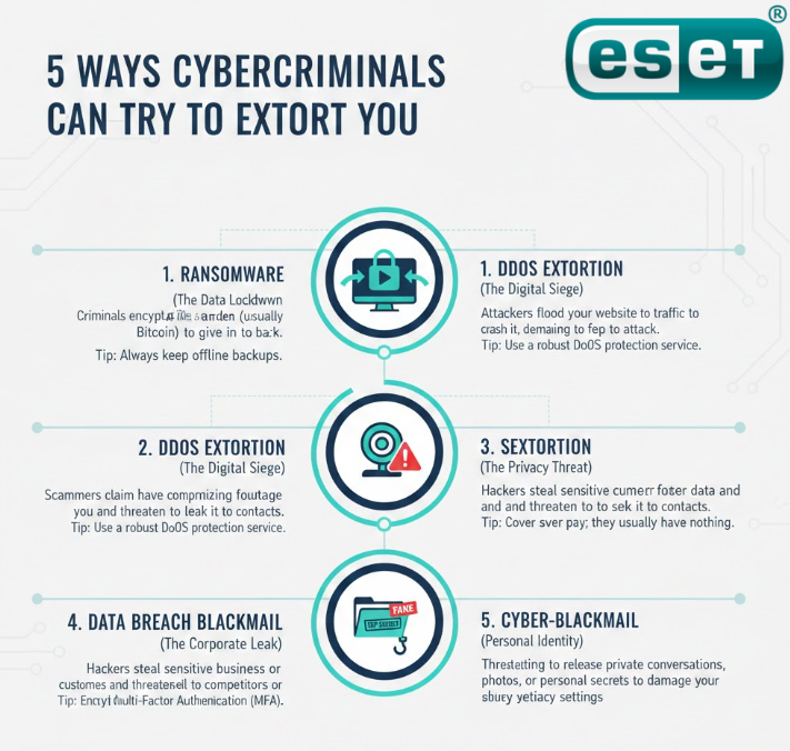 Ransomware is by far one of the best-known examples of extortion employed by hackers around the globe, with targets ranging from companies, through governments to individuals. The basic premise is that your device will be infested by ransomware using one of the various tactics hackers employ, such as duping you into clicking on a malicious link found in an email or posted on social media or shared with you through a direct instant message.